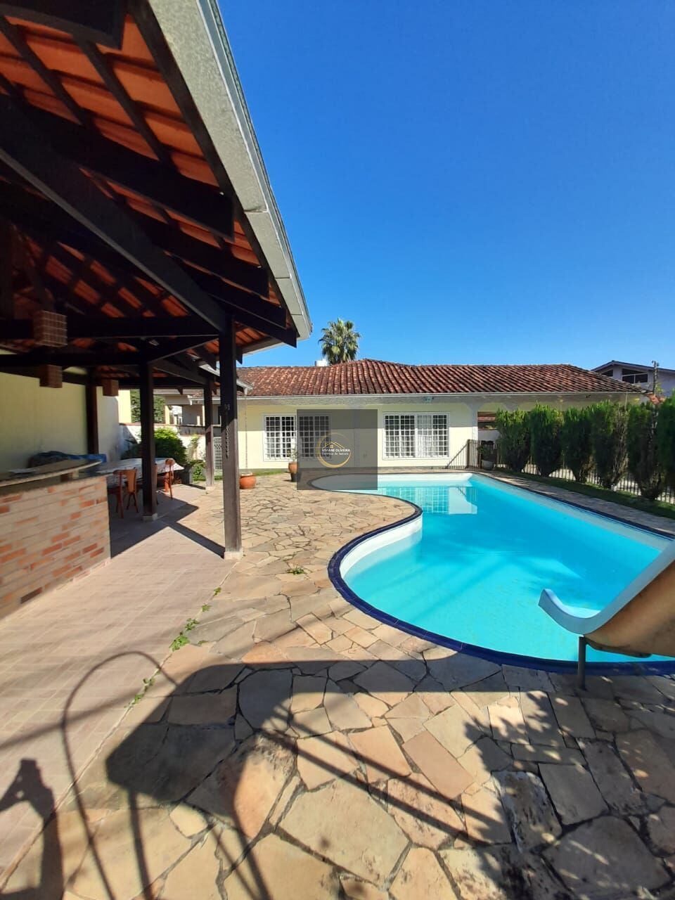 Uma área de lazer incrível aguarda você, completa com uma piscina refrescante e uma edícula convidativa. Adicionalmente, o imóvel possui vagas para até 7 carros, oferecendo comodidade e praticidade.